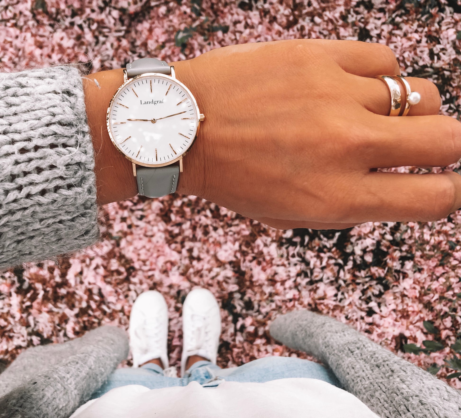 A delicate watch with a minimalist design and refined details – perfect for women who appreciate discreet elegance. The soft genuine leather strap, available in shades of pearl gray , powder pink or pure white , harmoniously complements the gold case with classic lines.